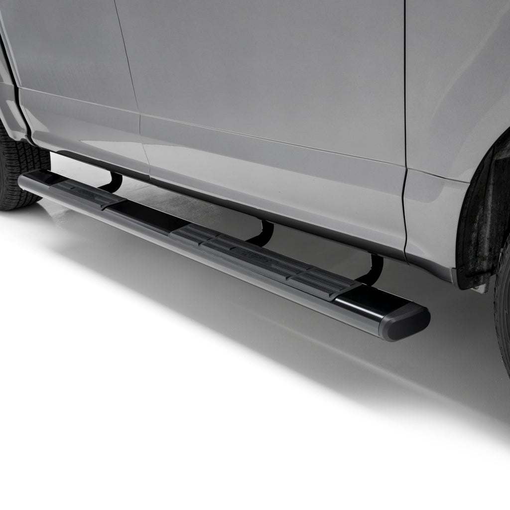 For solid footing, a comfortable step and a bold look for your truck, ARIES 6" oval side bars are a step up. They are designed to mimic the style of popular original equipment side bars and running boards, featuring two professional finish options, large non-skid step pads and tapered end caps. This particular pair of 6" ovals is made with aluminum alloy to be strong and lightweight. Aluminum construction makes them completely impervious to rust, and for an extra layer of corrosion protection, they come with a durable semi-gloss black powder coat finish. They are also available in polished 304 stainless steel. To protect the interior of the tubes, all 6" oval sides are equipped with hard ABS plastic end caps. The end caps come pre-attached to the tubes and feature a tapered design, lending to the overall OE look of the side bars and providing a professional finishing touch on your truck or SUV. For a sure step every time you climb into your vehicle, ARIES 6" ovals are equipped with extra-wide step pads. The step pads are made from tough polypropylene and provide a generous 5" width. The large, flat surface offers comfortable footing and has a textured surface to prevent slipping, even when wet. The polypropylene construction makes the step pads durable and crack-resistant for long-lasting use. ARIES 6" oval side bars are also made for easy, no-drill installation. The boards themselves feature a track system for versatile application, and they mount using vehicle-specific brackets for a custom fit on certain years of the Ford F-150, F-250 Super Duty, F-350 Super Duty, F-450 Super Duty and F-550 Super Duty (see application info to verify fitment). The mounting brackets are made from high-strength carbon steel and use pre-existing holes to eliminate drilling during the installation process.