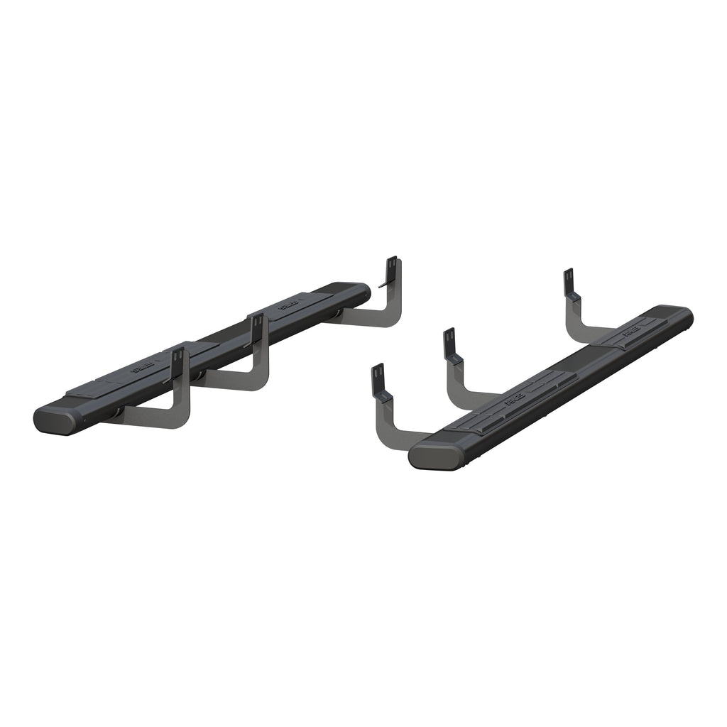 For solid footing, a comfortable step and a bold look for your truck, ARIES 6" oval side bars are a step up. They are designed to mimic the style of popular original equipment side bars and running boards, featuring two professional finish options, large non-skid step pads and tapered end caps. This particular pair of 6" ovals is made with aluminum alloy to be strong and lightweight. Aluminum construction makes them completely impervious to rust, and for an extra layer of corrosion protection, they come with a durable semi-gloss black powder coat finish. They are also available in polished 304 stainless steel. To protect the interior of the tubes, all 6" oval sides are equipped with hard ABS plastic end caps. The end caps come pre-attached to the tubes and feature a tapered design, lending to the overall OE look of the side bars and providing a professional finishing touch on your truck or SUV. For a sure step every time you climb into your vehicle, ARIES 6" ovals are equipped with extra-wide step pads. The step pads are made from tough polypropylene and provide a generous 5" width. The large, flat surface offers comfortable footing and has a textured surface to prevent slipping, even when wet. The polypropylene construction makes the step pads durable and crack-resistant for long-lasting use. ARIES 6" oval side bars are also made for easy, no-drill installation. The boards themselves feature a track system for versatile application, and they mount using vehicle-specific brackets for a custom fit on certain years of the Nissan Titan, Titan XD and Armada (see application info to verify fitment). The mounting brackets are made from high-strength carbon steel and use pre-existing holes to eliminate drilling during the installation process.