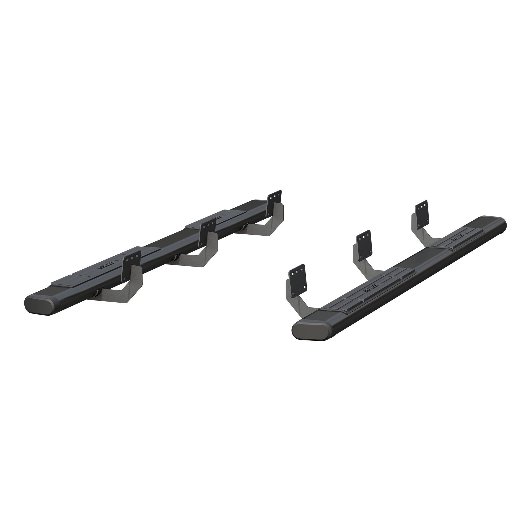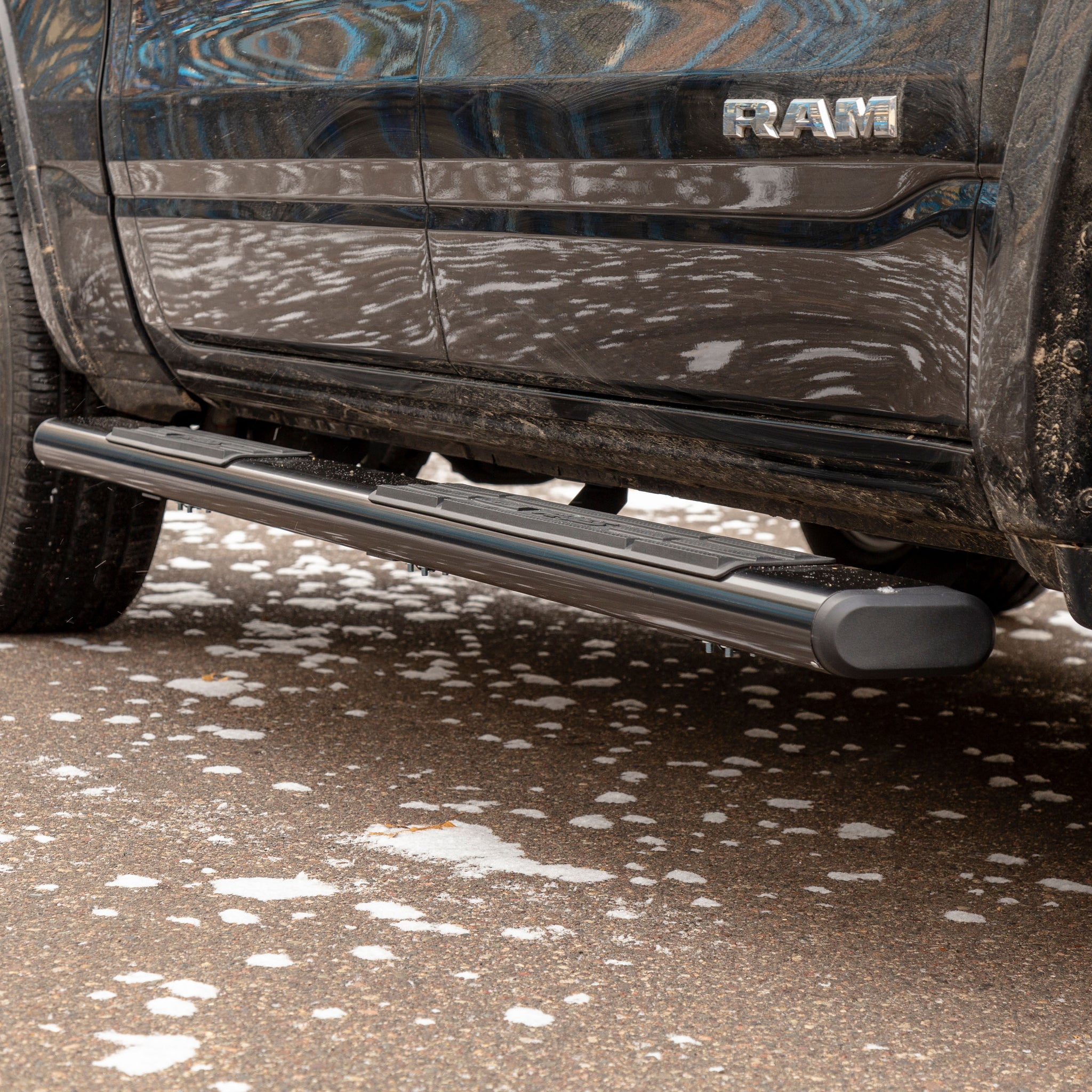 For solid footing, a comfortable step and a bold look for your truck, ARIES 6" oval side bars are a step up. They are designed to mimic the style of popular original equipment side bars and running boards, featuring two professional finish options, large non-skid step pads and tapered end caps. This particular pair of 6" ovals is made with aluminum alloy to be strong and lightweight. Aluminum construction makes them completely impervious to rust, and for an extra layer of corrosion protection, they come with a durable semi-gloss black powder coat finish. They are also available in polished 304 stainless steel. To protect the interior of the tubes, all 6" oval sides are equipped with hard ABS plastic end caps. The end caps come pre-attached to the tubes and feature a tapered design, lending to the overall OE look of the side bars and providing a professional finishing touch on your truck or SUV. For a sure step every time you climb into your vehicle, ARIES 6" ovals are equipped with extra-wide step pads. The step pads are made from tough polypropylene and provide a generous 5" width. The large, flat surface offers comfortable footing and has a textured surface to prevent slipping, even when wet. The polypropylene construction makes the step pads durable and crack-resistant for long-lasting use. ARIES 6" oval side bars are also made for easy, no-drill installation. The boards themselves feature a track system for versatile application, and they mount using vehicle-specific brackets for a custom fit on certain years of the Ram 1500 crew cab (see application info to verify fitment). The mounting brackets are made from high-strength carbon steel and use pre-existing holes to eliminate drilling during the installation process.