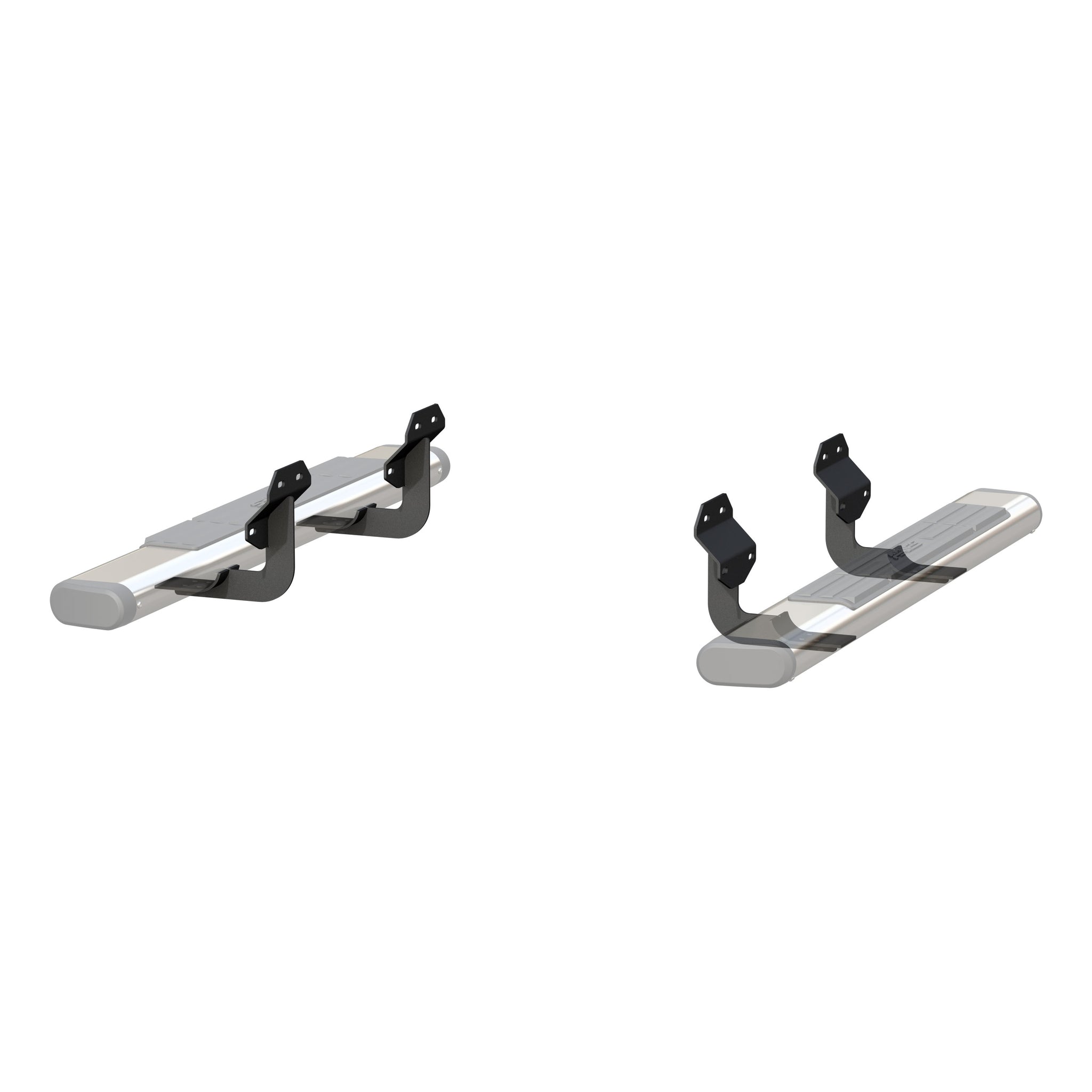 These mounting brackets are designed for vehicle-specific application and provide solid attachment for ARIES 6" oval side bars. They feature high-strength steel construction and a durable black powder coat finish. With a vehicle-specific design and the track mounting system of ARIES 6" ovals, you get a custom fit for your unique truck or SUV and an easy-as-possible, no-drill installation. To verify which side bars and brackets will fit your specific vehicle, see the application information. All brackets will accommodate both finish options.