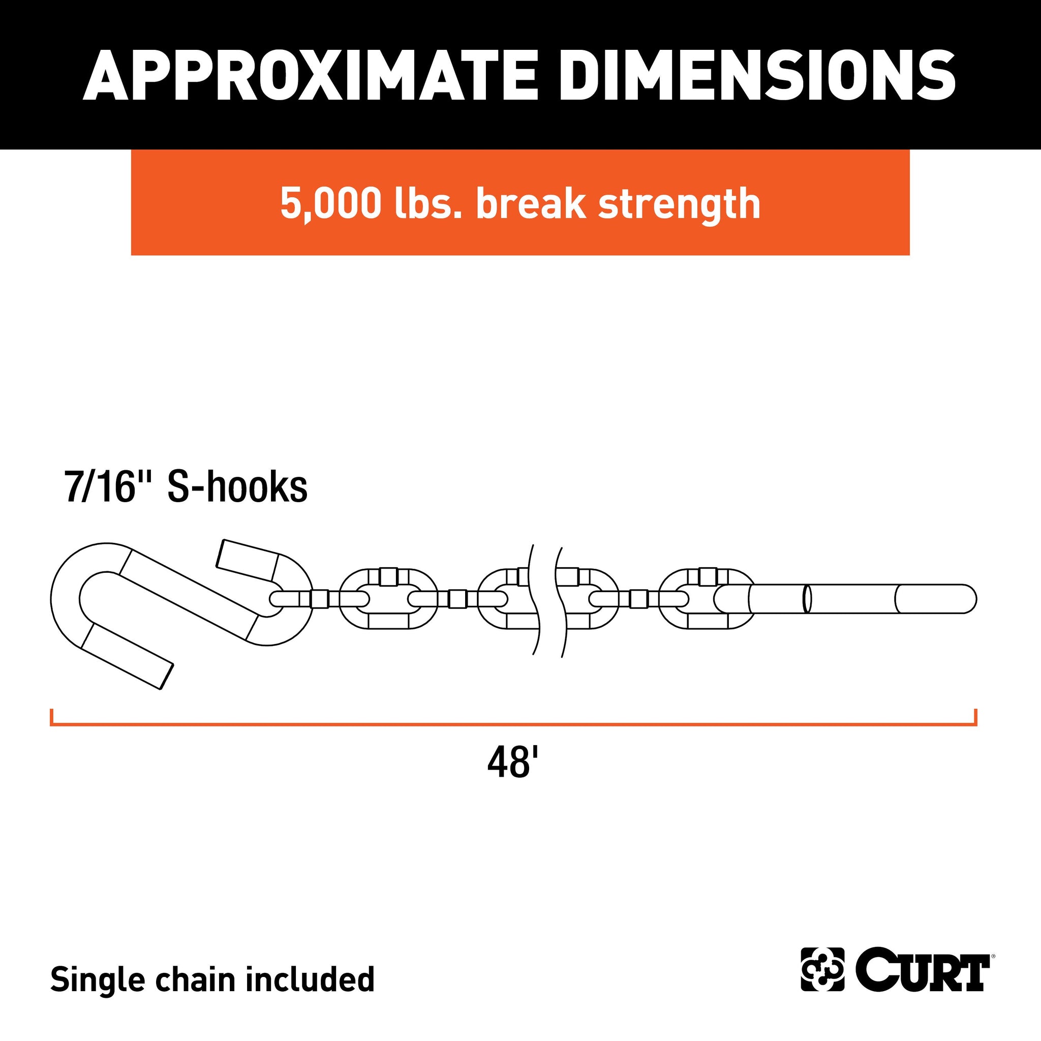 48" Safety Chain with 2 S-Hooks (5,000 lbs, Clear Zinc, Packaged)