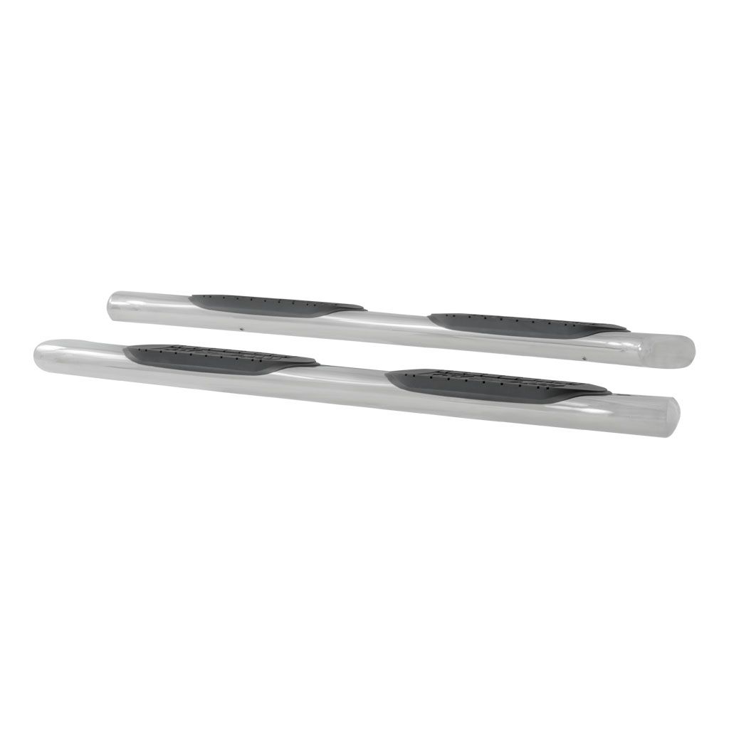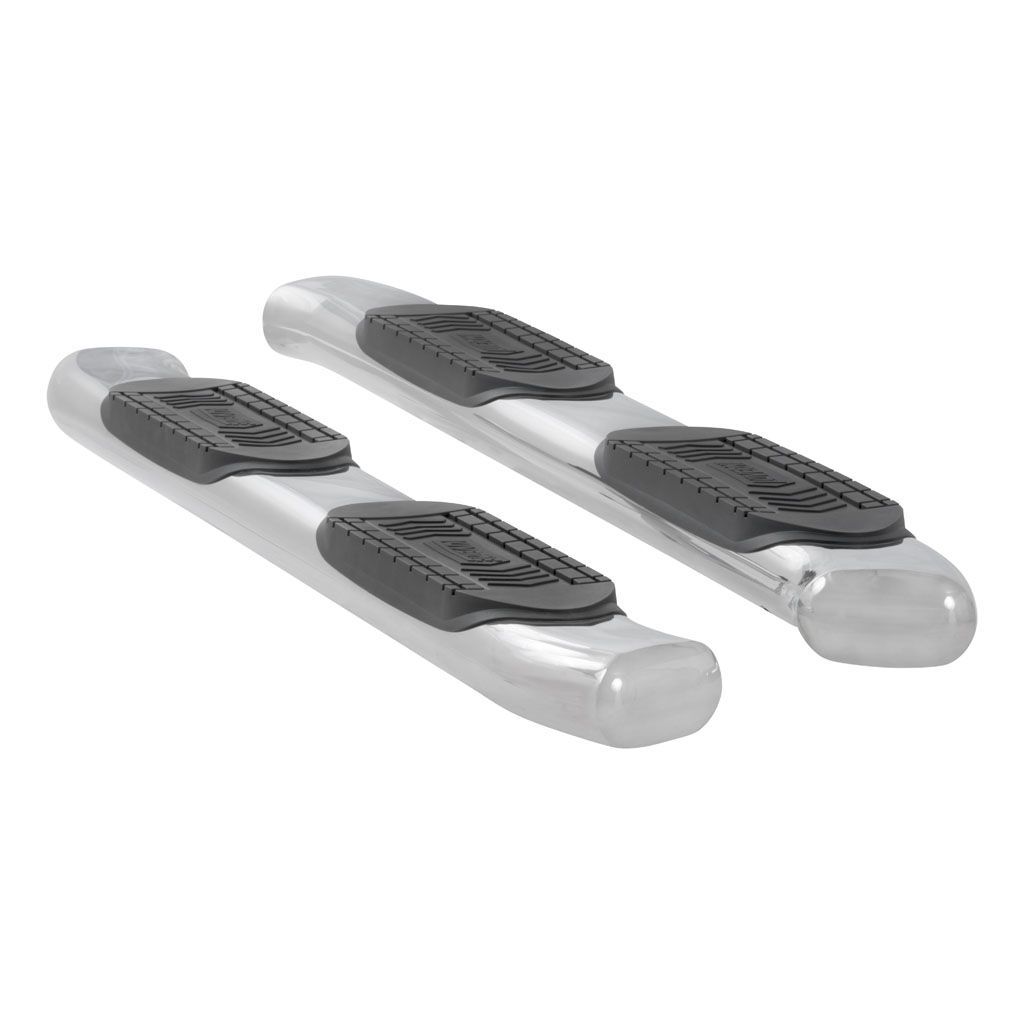 No other step combines bold surface area with a finished styling quite like LUVERNE 6" oval tubular nerf bars. These 6" x 3" ovals feature unique 30-degree bends in the front and rear and come with seamlessly welded end caps that are rounded off for a superior finished look and enhanced rust resistance. They feature extra-large step pads that provide 24" x 6" of comfortable, non-skid stepping area that safely cradles your foot. With two finish options in polished stainless steel or black powder-coated steel, LUVERNE 6" oval nerf bars allow you to enjoy deluxe footing that's customized to your vehicle.