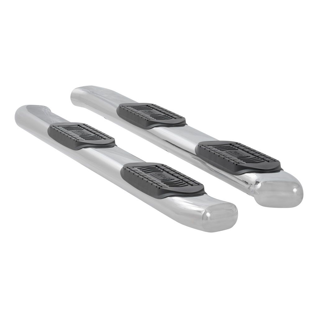 No other step combines bold surface area with a finished styling quite like LUVERNE 6" oval tubular nerf bars. These 6" x 3" ovals feature unique 30-degree bends in the front and rear and come with seamlessly welded end caps that are rounded off for a superior finished look and enhanced rust resistance. They feature extra-large step pads that provide 24" x 6" of comfortable, non-skid stepping area that safely cradles your foot. With two finish options in polished stainless steel or black powder-coated steel, LUVERNE 6" oval nerf bars allow you to enjoy deluxe footing that's customized to your vehicle.