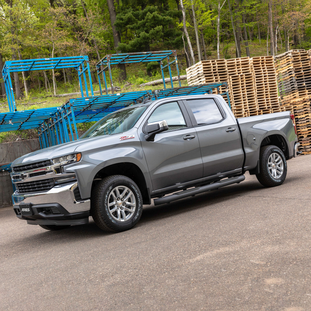 Step into your truck like you mean it with ARIES Big Step 4" round side bars. When it comes to your truck, Jeep or SUV, don't waste time with accessories that miss the mark. You need solid parts with plenty of attitude. ARIES Big Step nerf bars are made to be bigger, bolder and longer-lasting, featuring a powder-coated aluminum construction. These aluminum nerf bars are 40% lighter than steel and offer excellent strength and rigidity. They are also highly impervious to corrosion and are coated in a textured black finish to protect against scratching and scuffs. Some of the features that make the ARIES 4" side bar a bold accessory are its mandrel-bent ends and extra-large step pads. The ends offer a unique look compared to capped ends and give the side bars a more contoured appearance. The custom step pads provide a generous width for more comfortable footing, and the textured pads are made from polypropylene so they will not crack or get slippery when wet. ARIES Big Step 4" round nerf bars are compatible with a variety of trucks, Jeeps and SUVs. The vehicle-specific mounting brackets are designed for a custom fit on each unique application, and they allow you to use factory mounting holes for a no-drill installation. This set of custom side bars fits specific years of the Chevrolet Silverado and GMC Sierra 1500, 2500 HD or 3500 HD crew cab (see application info to verify fitment). ARIES Big Step 4" round side bars are also designed to go hand-in-hand with the ARIES Big Horn bull bar, giving you a complete look for your custom ride.