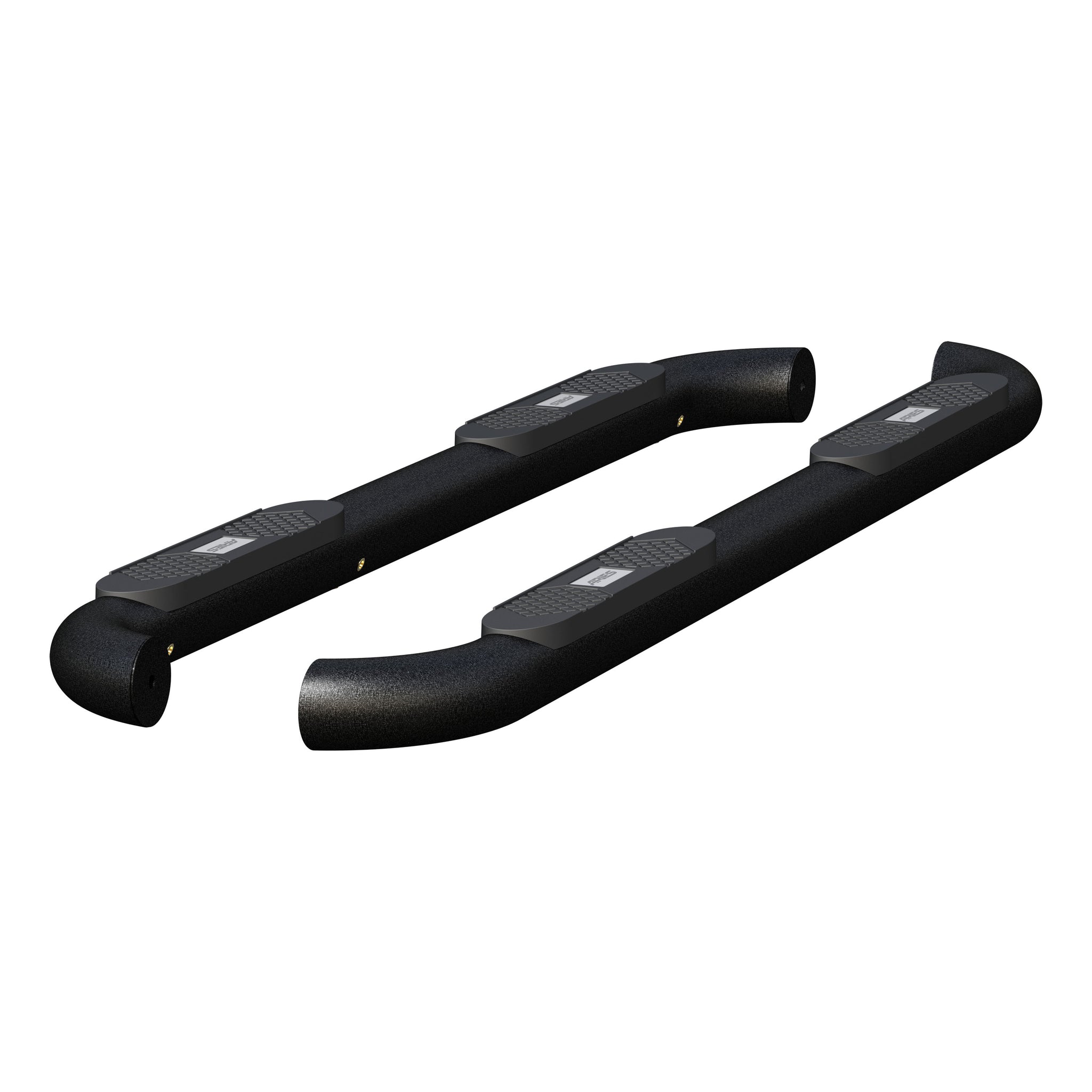 Step into your truck like you mean it with ARIES Big Step 4" round side bars. When it comes to your truck, Jeep or SUV, don't waste time with accessories that miss the mark. You need solid parts with plenty of attitude. ARIES Big Step nerf bars are made to be bigger, bolder and longer-lasting, featuring a powder-coated aluminum construction. These aluminum nerf bars are 40% lighter than steel and offer excellent strength and rigidity. They are also highly impervious to corrosion and are coated in a textured black finish to protect against scratching and scuffs. Some of the features that make the ARIES 4" side bar a bold accessory are its mandrel-bent ends and extra-large step pads. The ends offer a unique look compared to capped ends and give the side bars a more contoured appearance. The custom step pads provide a generous width for more comfortable footing, and the textured pads are made from polypropylene so they will not crack or get slippery when wet. ARIES Big Step 4" round nerf bars are compatible with a variety of trucks, Jeeps and SUVs. The vehicle-specific mounting brackets are designed for a custom fit on each unique application, and they allow you to use factory mounting holes for a no-drill installation. This set of custom side bars fits specific years of the Nissan Titan and Titan XD (see application info to verify fitment). ARIES Big Step 4" round side bars are also designed to go hand-in-hand with the ARIES Big Horn bull bar, giving you a complete look for your custom ride.