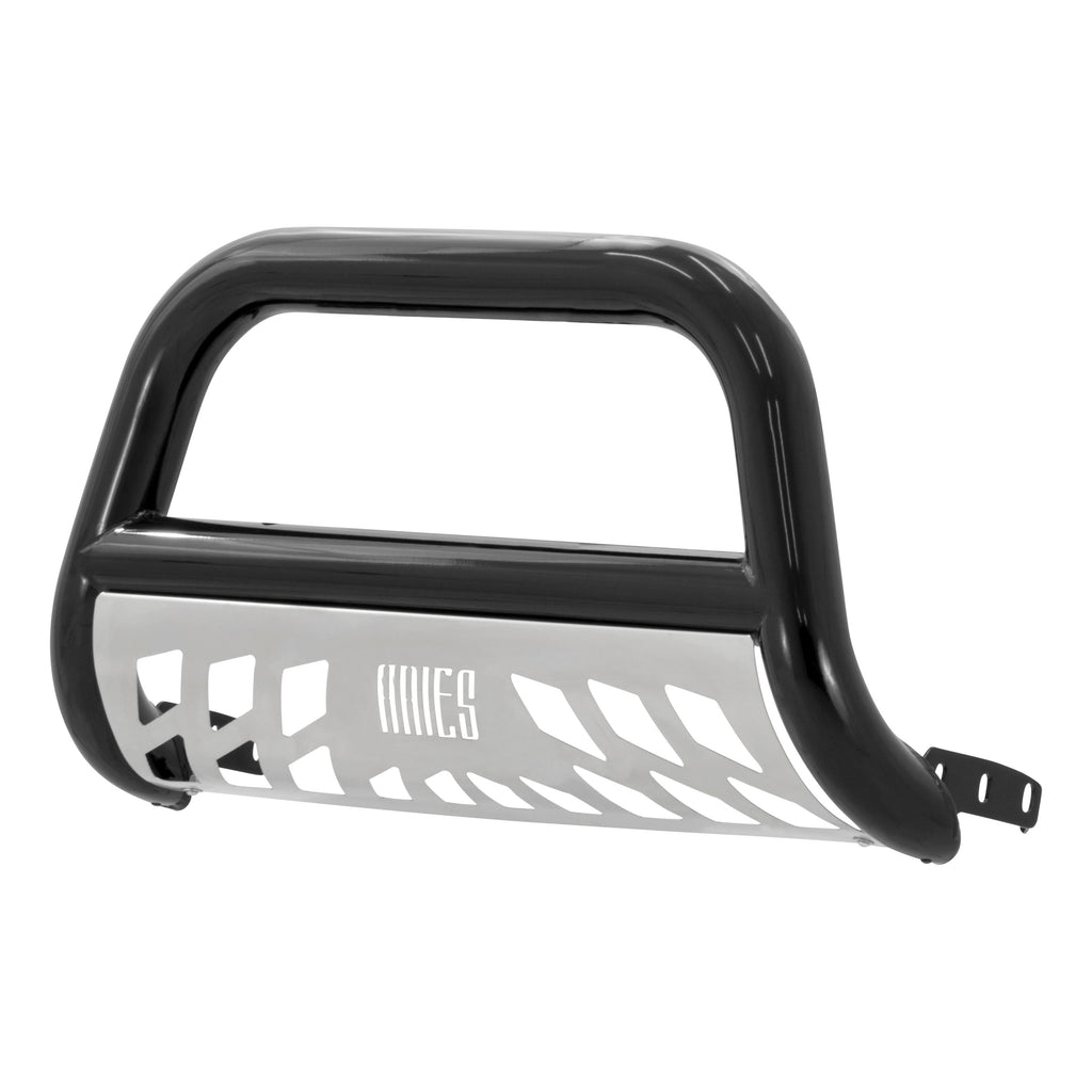 For those who brave the wasteland, it's not easy finding a bull bar that can keep up. Extreme temperatures, moisture and road salt are all waiting to turn your front end into nothing but a pile of rust. For such individuals, the ARIES 3" Stealth bull bar was designed, finished and tested to outlast harsh climates. Unlike most bull bars that come with a black finish, the Stealth bull bar is made with stainless steel instead of carbon steel. A stainless steel construction maintains reliable strength and offers the high rust resistance needed to keep going season after season. To add even more protection against elements, the Stealth bull bar is shielded in a high-gloss black powder coat. This polyester-based finish gives the stainless steel frame a thick skin to further resist rust and changing temperatures. We also put our Stealth bull bars through a rigorous salt spray test to prove this front end accessory can endure whatever the wilderness has in store. With its high resilience to salt and extreme temperatures, the Stealth bull bar provides a reliable black finish option, as an alternative to the polished stainless steel look. All Stealth bull bars are made vehicle-specific for a no-drill, custom fit, and they come with a removable brushed 304 stainless steel skid plate to protect against rocks and other small road debris. ARIES Stealth bull bars also come with two pre-drilled holes in the crossbar to accept round lights up to 5-1/2" in diameter or an LED light bar. It might not be an easy life in the wasteland, but why should that limit your choice of truck accessories? For the black finish option your truck deserves and the quality you expect, choose the ARIES 3" Stealth bull bar. This bull bar fits select model years of the Chevrolet Avalanche, Silverado, Suburban, Tahoe and GMC Sierra, Yukon and Yukon XL (see application info to verify fitment).