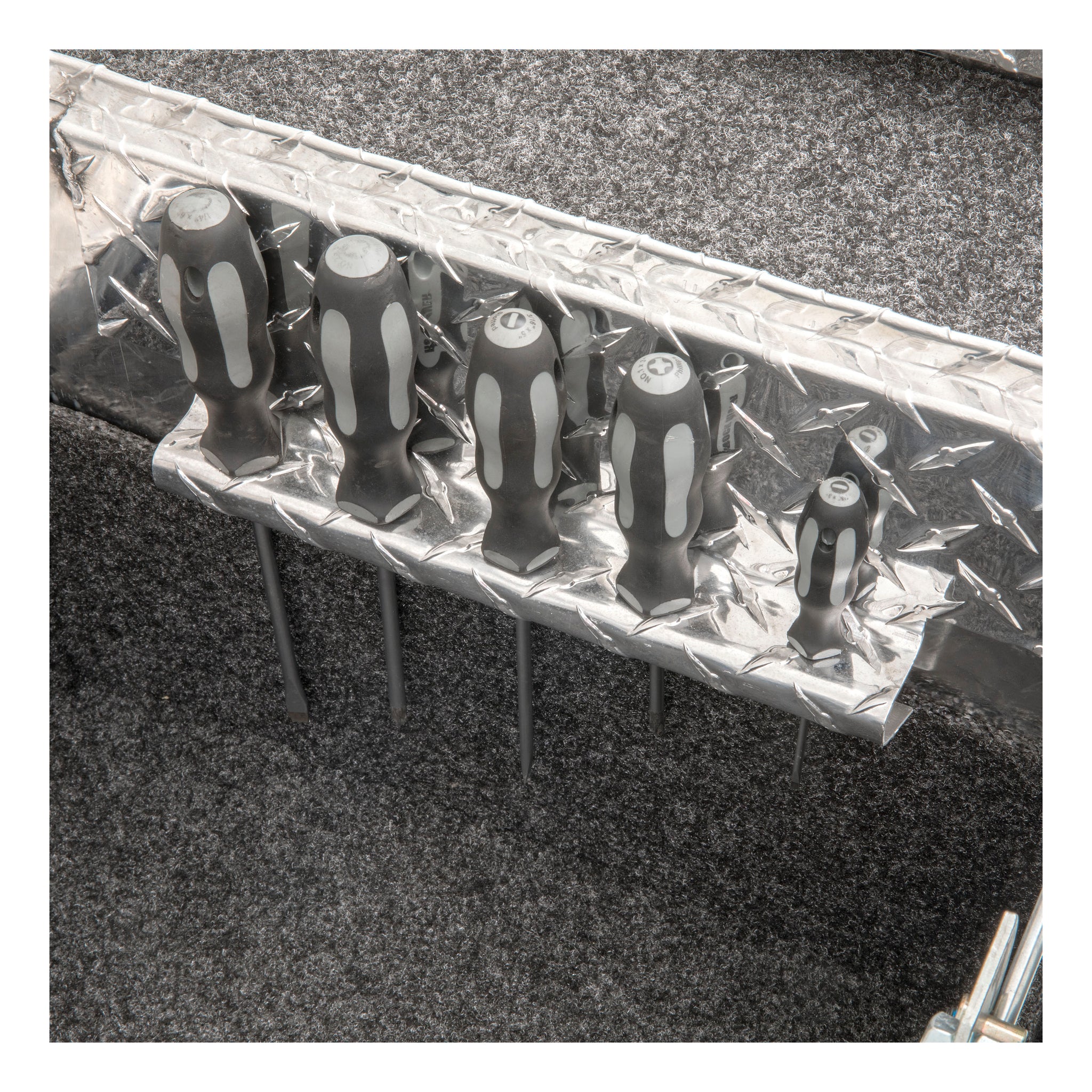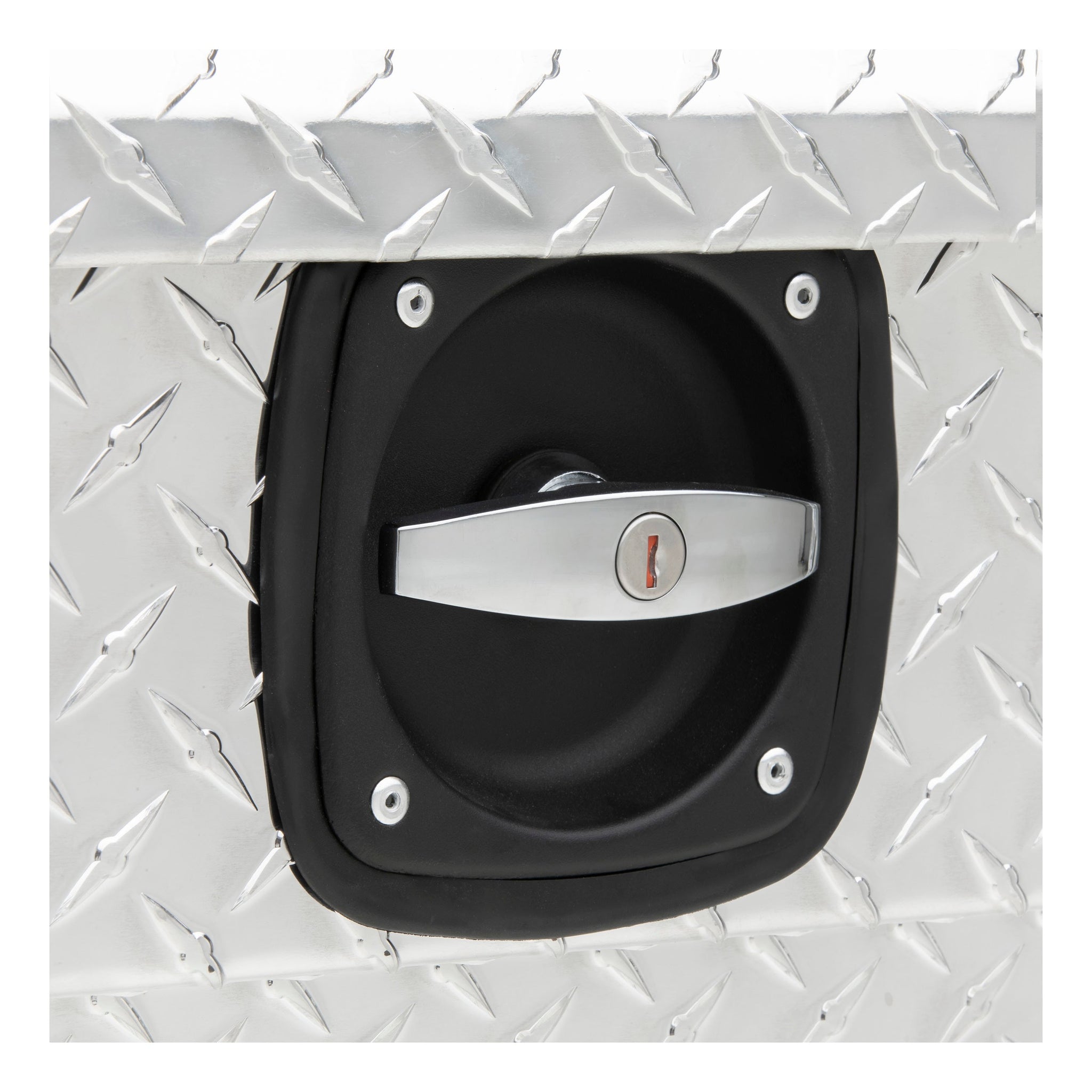 UWS Secure Lock crossover truck tool boxes provide the ultimate in security and convenience, offering you a truck bed tool box unlike any other. It features a unique locking system, an innovative interior and a highly durable design. The Secure Lock truck box operates with two lockable twist handles. These handles are key-operated and allow you to lock the truck tool box from either the driver or passenger side. The two locks also give you the option to lock both sides for maximum security. The lid of the Secure Lock tool box is particularly strong, featuring our patented RigidCore foam-filled design. This gives the lid greater structural integrity and resists bending and warping. Like most UWS tool boxes, this box also features extra-thick aluminum construction, and the tub is welded into a single piece to ensure waterproof protection for your items. It is also equipped with a MicroSeal gasket to keep out dust, grime, moisture and insects. To protect the interior of the Secure Lock tool box, it features a heavy-duty BedRug liner. This protective mat resists dents and damage to the box itself and to your tools and other items, and it helps trap dust and dirt for easy cleanup. The UWS Secure Lock truck tool box offers excellent organization for your tools, featuring an included three-compartment tray and built-in screwdriver holders. The lid is able to open to a complete 90 degrees for easy access to the interior contents, and it is equipped with self-closing struts that automatically close the lid with a slight manual pull, securing the box when your hands are full. The Secure Lock truck tool box is quick and easy to install, and it is available in multiple sizes to provide the perfect fit for your own unique truck bed. Like all UWS products, each Secure Lock crossover truck tool box is proudly assembled right here in the USA for style and long-lasting dependability (NOTE: This product is heavily packaged for parcel shipping).