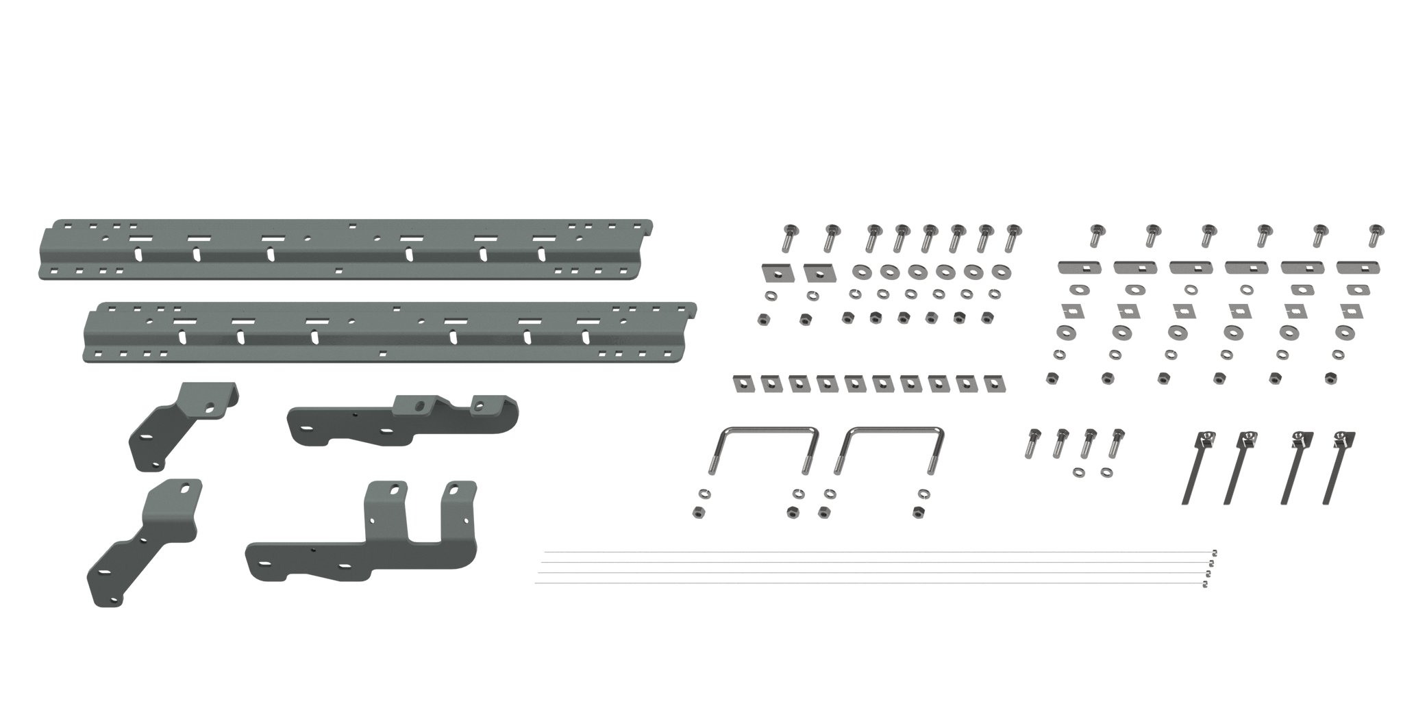 - Custom installation brackets mount beneath your truck bed to provide attachment points for 5th Wheel hitch rails