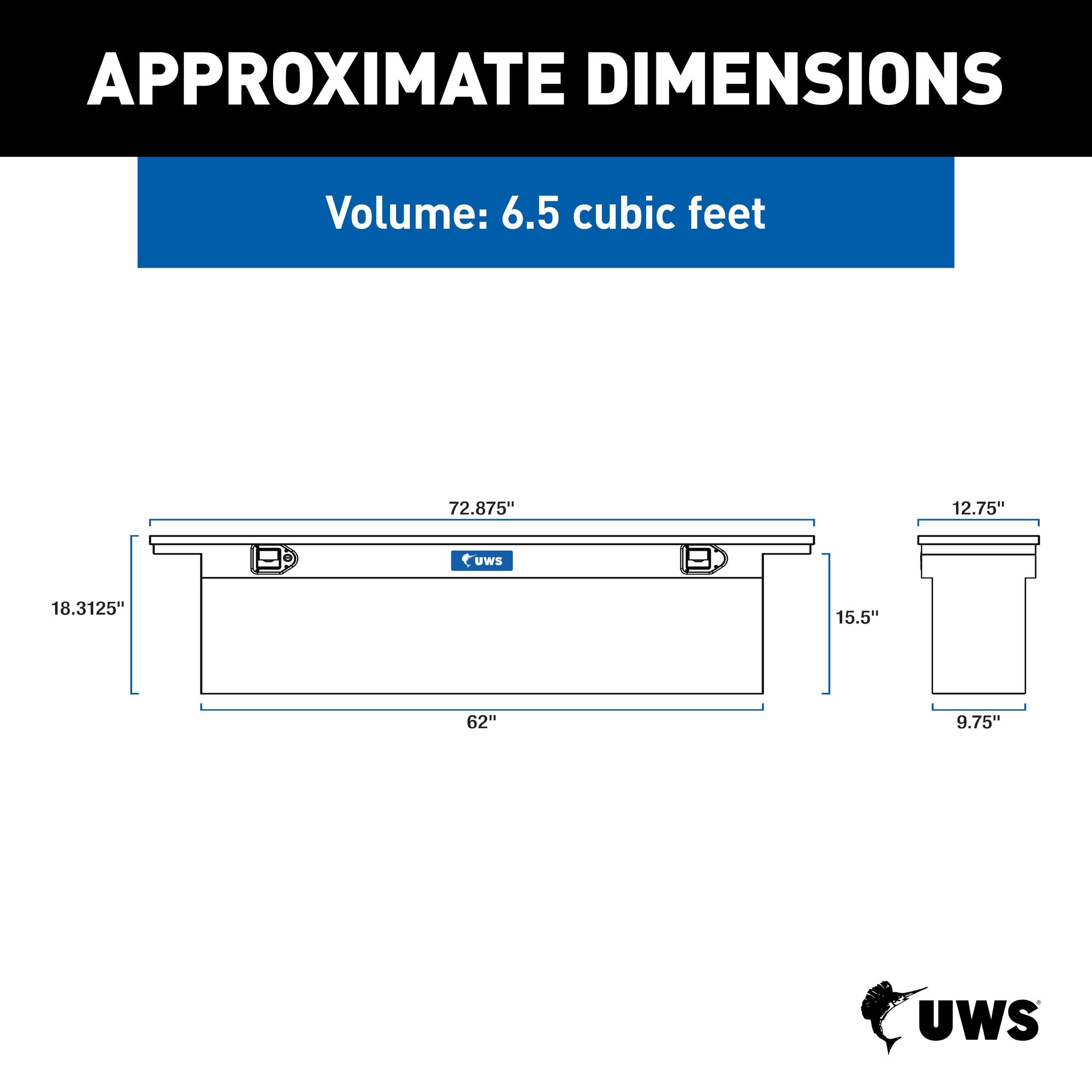 UWS crossover truck tool boxes are the tried-and-true way of keeping your tools organized, on-hand and fully secure no matter where you and your truck roam. Each UWS tool box is built from extra-thick aluminum welded into a single-piece tub. This provides the tool box with reliable strength and helps keep the interior sealed off from the elements. Aluminum construction also makes the box highly resistant to corrosion for long-lasting use. This particular box features a slim-line design, providing adequate clearance for truck beds that have extremely limited space between the wheel wells and truck cab. It also features a low profile, meaning the lid is built lower than our standard lid. This provides a better view out the rear cab window and additional clearance for other items in the truck bed, if needed. To add even more strength to the crossover truck tool box, the lid features our patented RigidCore foam-filled design. Layered between two sheets of aluminum, this core greatly increases the structural integrity of the lid to prevent bending and warping and to ensure smooth opening and closing. The lid is able to open to a full 90 degrees, providing better access to tools, equipment and other stored items. It also features self-opening struts to make it easy to open the box when your hands are full. To keep out moisture, dirt and even insects, the lid is also fitted with a MicroSeal gasket that seals off the inside of the tool box from the outside elements. UWS crossover truck tool boxes make it easy to keep your tools and other items organized, featuring a three-compartment sliding tool tray. The tool box itself is easy to install and is available in multiple sizes to provide the perfect for your truck and lifestyle. Like all UWS products, each crossover truck tool box is proudly assembled right here in the USA for style and long-lasting dependability.