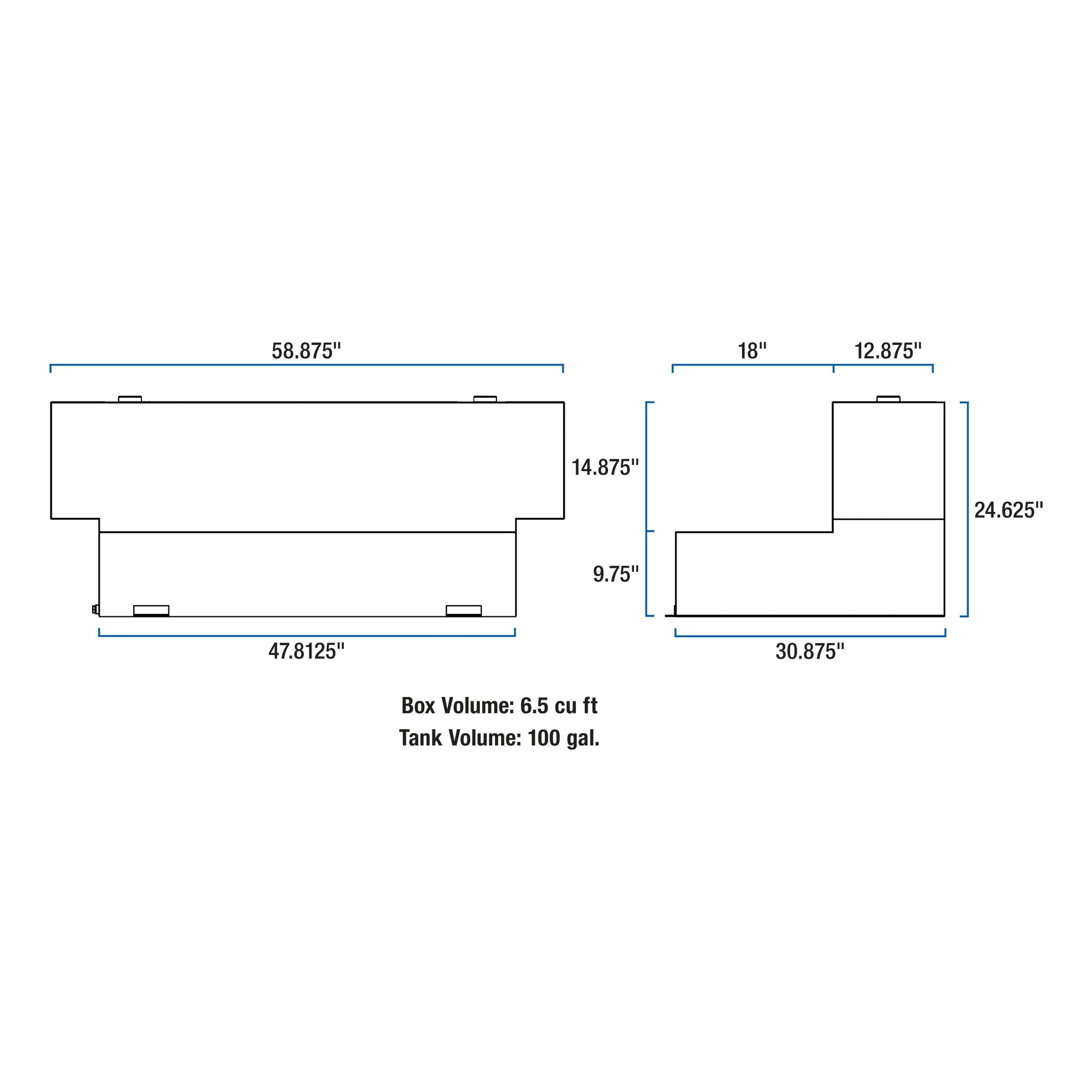 Gloss Black Hammerhead-Style 100-Gallon Aluminum L-Shape Transfer Tank