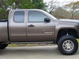 Built with today's work truck in mind, N-FAB offers its patented hoop step design and innovative mounting system in a Cab Length configuration. Designed with classic N-FAB styling, Cab Length Nerf Steps are ideal for flat bed trucks, stake bed trucks, vehicles with campers and even trucks with side exhaust forward of the rear wheels. Manufactured from 0.084 Inch wall tubular steel, Cab Length Nerf Steps provide all of the strength and durability for which N-FAB is known. All N-FAB Cab Length Nerf Steps are available in standard gloss black powder coat over a zinc base coat. Cab Length Nerf Steps are also available in textured matte black finish, and custom vehicle matched colors, for an additional charge.