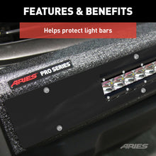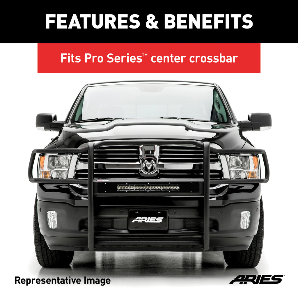 The ARIES Pro Series grille guard is unlike any other grille guard or brush guard on the road today because of its patented center crossbar. The unique crossbar is able to house a single-row LED light bar, allowing you to truly set your truck apart from all others. To further stylize your truck or SUV, the Pro Series grille guard can also accept this interchangeable grille guard cover plate. It easily bolts on and provides added security for your aftermarket lights and a customized look for your front end. We offer a total of eight cover plate options with four different styles and three different finishes to choose from, allowing you to find the look that best complements your vehicle. A black mesh cover plate (#PC30MB) is included standard with each Pro Series grille guard.