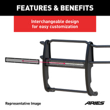 The ARIES Pro Series grille guard is unlike any other grille guard or brush guard on the road today because of its patented center crossbar. The unique crossbar is able to house a single-row LED light bar, allowing you to truly set your truck apart from all others. To further stylize your truck or SUV, the Pro Series grille guard can also accept this interchangeable grille guard cover plate. It easily bolts on and provides added security for your aftermarket lights and a customized look for your front end. We offer a total of eight cover plate options with four different styles and three different finishes to choose from, allowing you to find the look that best complements your vehicle. This black mesh cover plate (#PC30MB) is included standard with each Pro Series grille guard.
