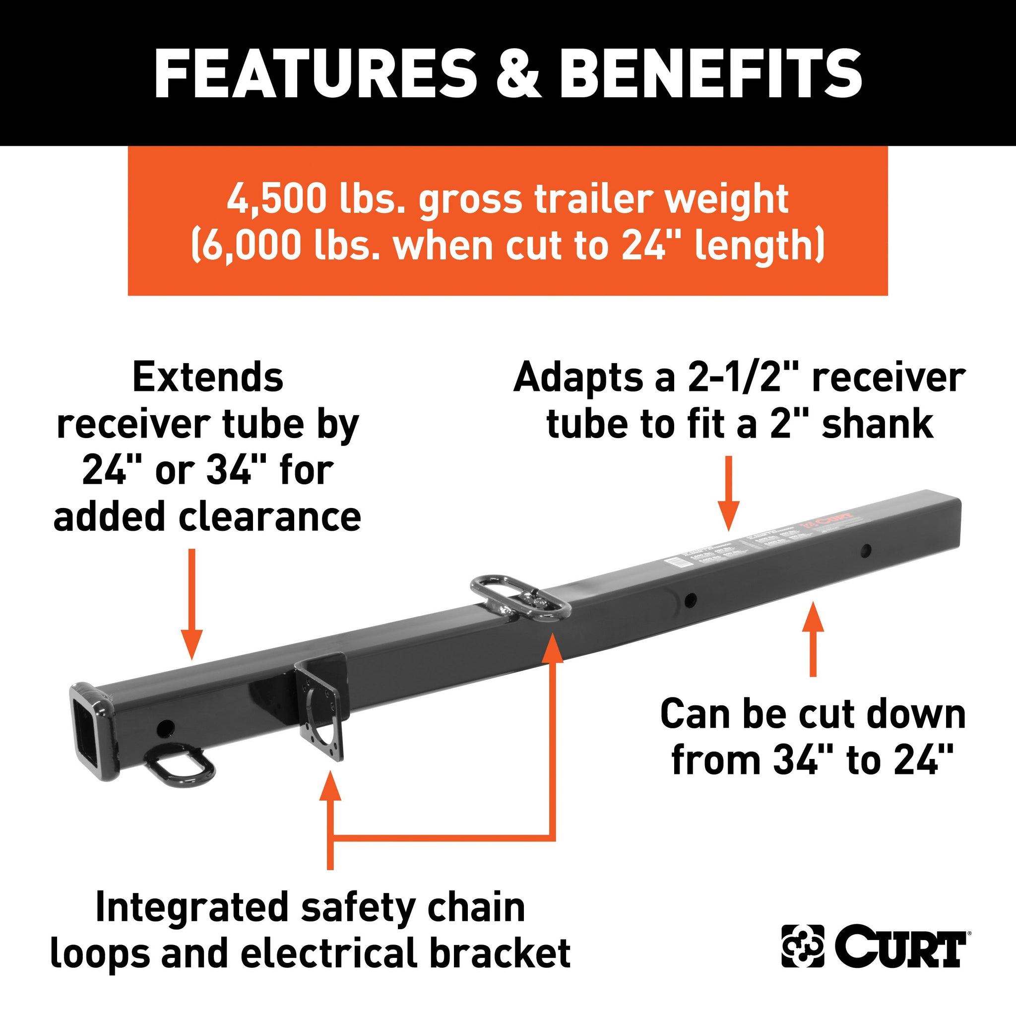 Receiver Tube Adapter (2-1/2" to 2" Shank, 4,500 lbs. GTW, 34" Length)