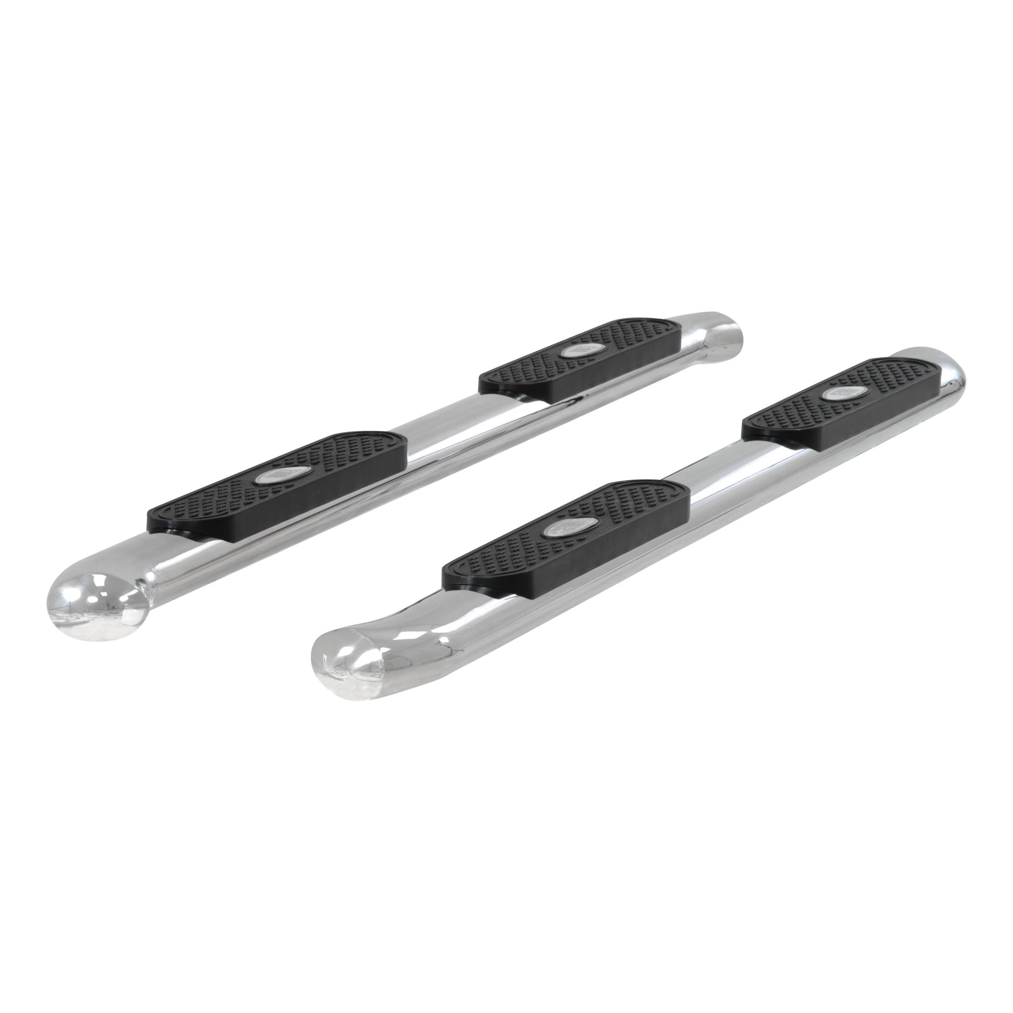 When you start and end your day turning the ignition of your truck, unreliable footing just is not an option. You need a step that can bear weight with ease, provide comfortable footing and look good doing it. ARIES 4" oval side bars are sleek, strong and custom-fitted to be a highly functional extension of your truck. ARIES 4" oval side bars are made with strong 4" elliptical tubing and are available in two different finish options to allow you full customization: polished stainless steel and black powder coat carbon steel. This set of side bars is constructed from 304 stainless steel, meaning high nickel content to be truly stainless. They easily resist rust and corrosion and feature a highly polished finish that is made to last. Something that sets the ARIES 4" oval side bar apart from all others is its blended end caps and OE-style bends. Rather than capping our side bars with a plastic cap, we offer a blended end cap for a smooth, finished appearance. We also equip the ends with a special 20-degree bend and original equipment styling to perfectly contour to your vehicle. ARIES 4" oval side bars are fitted with raised step pads to provide a wide stepping surface. The polypropylene construction will not crack over time, and because it has a textured grip, the surface is highly resistant to slips and skids, even when wet. To add an extra element of class to our oval sides, we also fit each one with a stainless steel insignia bearing the ARIES name. Installation of ARIES 4" oval side bars is quick and easy with custom-fitted mounting brackets and no drilling necessary. These nerf bars fit select model years of the Toyota Tacoma (see application info to verify fitment).