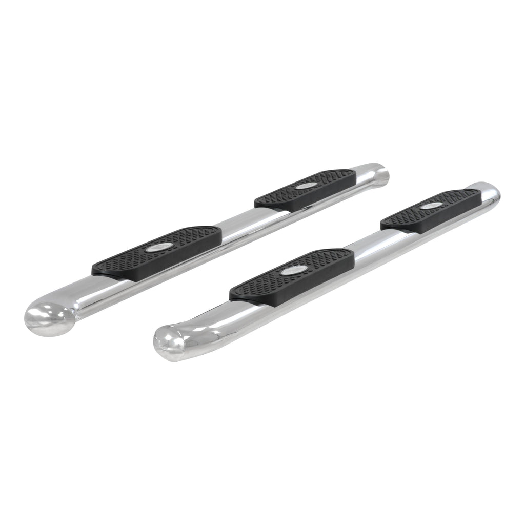When you start and end your day turning the ignition of your truck, unreliable footing just is not an option. You need a step that can bear weight with ease, provide comfortable footing and look good doing it. ARIES 4" oval side bars are sleek, strong and custom-fitted to be a highly functional extension of your truck. ARIES 4" oval side bars are made with strong 4" elliptical tubing and are available in two different finish options to allow you full customization: polished stainless steel and black powder coat carbon steel. This set of side bars is constructed from 304 stainless steel, meaning high nickel content to be truly stainless. They easily resist rust and corrosion and feature a highly polished finish that is made to last. Something that sets the ARIES 4" oval side bar apart from all others is its blended end caps and OE-style bends. Rather than capping our side bars with a plastic cap, we offer a blended end cap for a smooth, finished appearance. We also equip the ends with a special 20-degree bend and original equipment styling to perfectly contour to your vehicle. ARIES 4" oval side bars are fitted with raised step pads to provide a wide stepping surface. The polypropylene construction will not crack over time, and because it has a textured grip, the surface is highly resistant to slips and skids, even when wet. To add an extra element of class to our oval sides, we also fit each one with a stainless steel insignia bearing the ARIES name. Installation of ARIES 4" oval side bars is quick and easy with custom-fitted mounting brackets and no drilling necessary. These nerf bars fit select model years of the Toyota Tundra (see application info to verify fitment).
