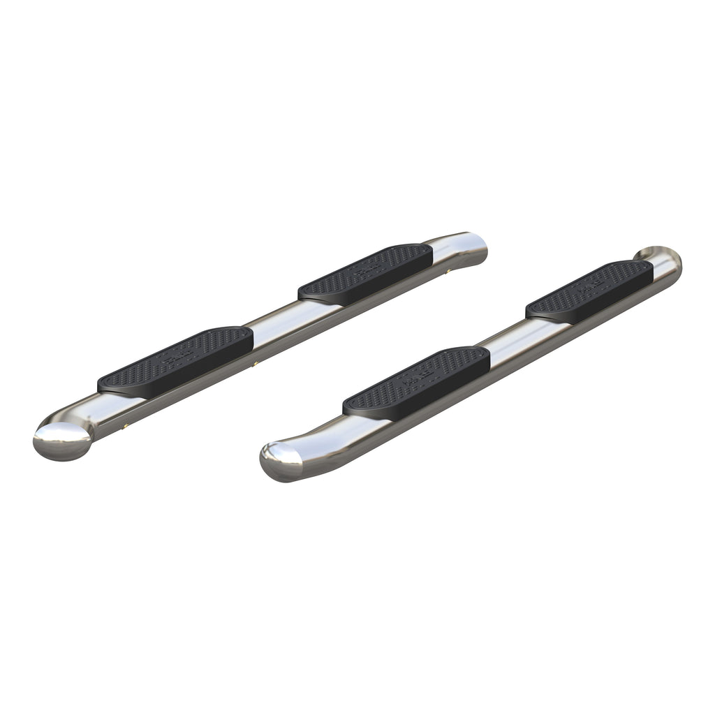 When you start and end your day turning the ignition of your truck, unreliable footing just is not an option. You need a step that can bear weight with ease, provide comfortable footing and look good doing it. ARIES 4" oval side bars are sleek, strong and custom-fitted to be a highly functional extension of your truck. ARIES 4" oval side bars are made with strong 4" elliptical tubing and are available in two different finish options to allow for full customization: polished stainless steel and black powder coat carbon steel. This set of side bars is constructed from 304 stainless steel, meaning high nickel content to be truly stainless. They easily resist rust and corrosion and feature a highly polished finish that is made to last. Something that sets the ARIES 4" oval side bar apart from all others is its blended end caps and OE-style bends. Rather than capping our side bars with a plastic cap, we offer a blended end cap for a smooth, finished appearance. We also equip the ends with a special 20-degree bend and original equipment styling to perfectly contour to your vehicle. ARIES 4" oval side bars are fitted with raised step pads to provide a wide stepping surface. The polypropylene construction will not crack over time, and because it has a textured grip, the surface is highly resistant to slips and skids, even when wet. Installation of ARIES 4" oval side bars is quick and easy with custom-fitted mounting brackets and no drilling necessary. These nerf bars fit select model years of the Chevrolet Colorado and GMC Canyon crew cab (see application info to verify fitment).