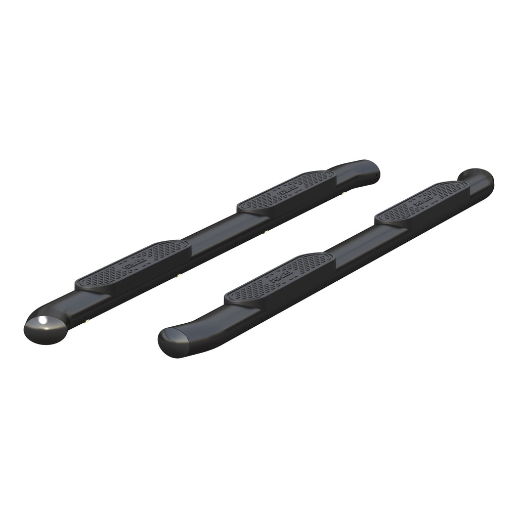 When you start and end your day turning the ignition of your truck, unreliable footing just is not an option. You need a step that can bear weight with ease, provide comfortable footing and look good doing it. ARIES 4" oval side bars are sleek, strong and custom-fitted to be a highly functional extension of your truck. ARIES 4" oval side bars are made with strong 4" elliptical tubing and are available in two different finish options to allow for full customization: polished stainless steel and black powder coat carbon steel. This set of side bars is constructed from high-strength carbon steel for a solid step, and they feature a dual-layer E-coat and semi-gloss black powder coat finish for excellent protection against scratching, chipping and peeling. Something that sets the ARIES 4" oval side bar apart from all others is its blended end caps and OE-style bends. Rather than capping our side bars with a plastic cap, we offer a blended end cap for a smooth, finished appearance. We also equip the ends with a special 20-degree bend and original equipment styling to perfectly contour to your vehicle. ARIES 4" oval side bars are fitted with raised step pads to provide a wide stepping surface. The polypropylene construction will not crack over time, and because it has a textured grip, the surface is highly resistant to slips and skids, even when wet. Installation of ARIES 4" oval side bars is quick and easy with custom-fitted mounting brackets and no drilling necessary. These nerf bars fit select model years of the Chevrolet Silverado and GMC Sierra 1500, 2500 HD or 3500 HD crew cab (see application info to verify fitment).