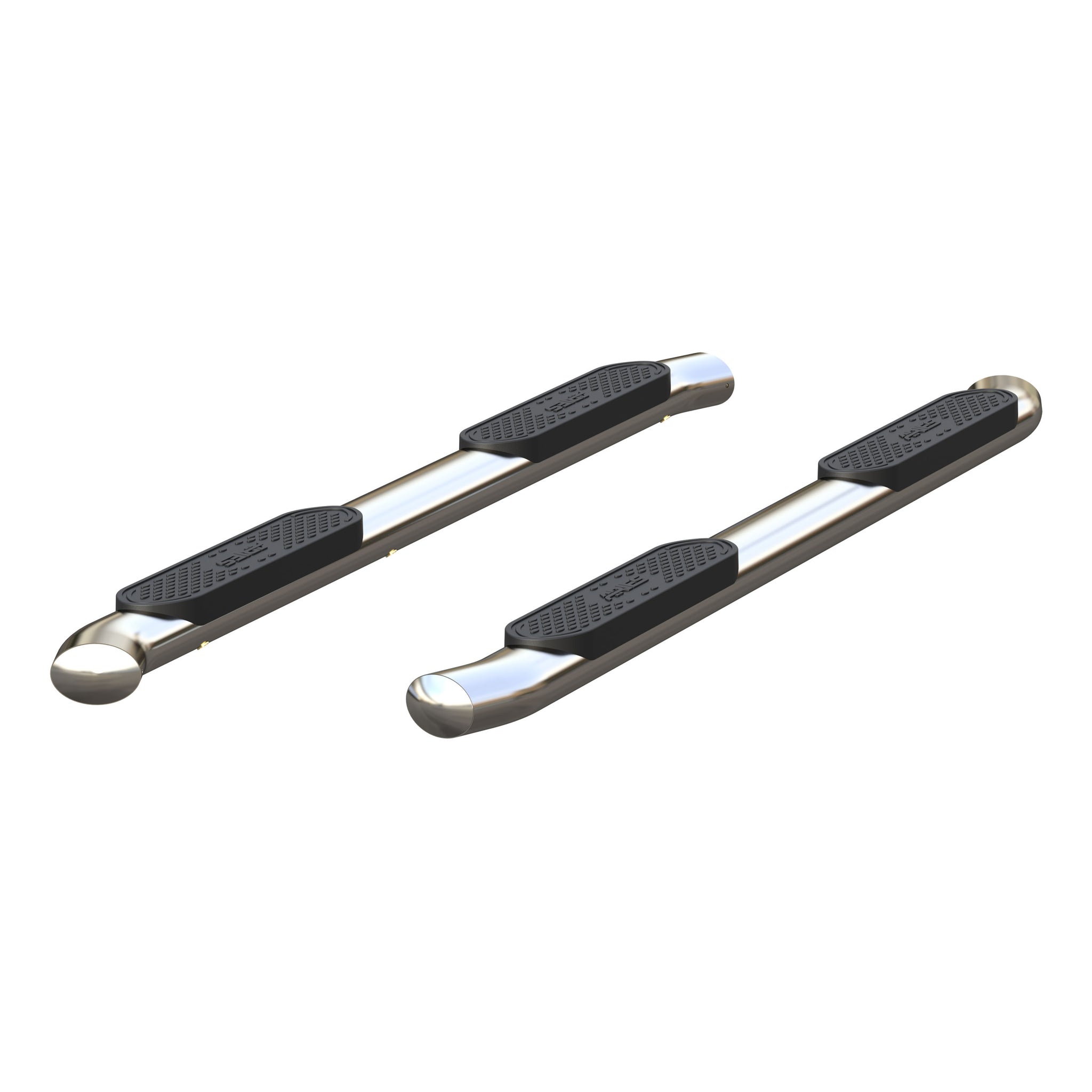 When you start and end your day turning the ignition of your truck, unreliable footing just is not an option. You need a step that can bear weight with ease, provide comfortable footing and look good doing it. ARIES 4" oval side bars are sleek, strong and custom-fitted to be a highly functional extension of your truck. ARIES 4" oval side bars are made with strong 4" elliptical tubing and are available in two different finish options to allow you full customization: polished stainless steel and black powder coat carbon steel. This set of side bars is constructed from 304 stainless steel, meaning high nickel content to be truly stainless. They easily resist rust and corrosion and feature a highly polished finish that is made to last. Something that sets the ARIES 4" oval side bar apart from all others is its blended end caps and OE-style bends. Rather than capping our side bars with a plastic cap, we offer a blended end cap for a smooth, finished appearance. We also equip the ends with a special 20-degree bend and original equipment styling to perfectly contour to your vehicle. ARIES 4" oval side bars are fitted with raised step pads to provide a wide stepping surface. The polypropylene construction will not crack over time, and because it has a textured grip, the surface is highly resistant to slips and skids, even when wet. Installation of ARIES 4" oval side bars is quick and easy with custom-fitted mounting brackets and no drilling necessary. These nerf bars fit select model years of the Chevrolet Silverado 1500 and GMC Sierra 1500 extended cab (see application info to verify fitment).