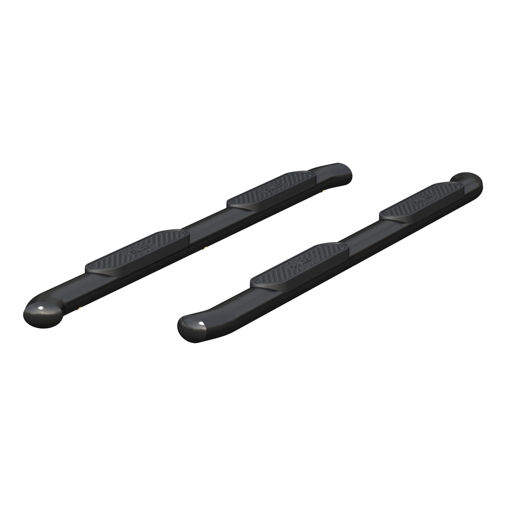 When you start and end your day turning the ignition of your truck, unreliable footing just is not an option. You need a step that can bear weight with ease, provide comfortable footing and look good doing it. ARIES 4" oval side bars are sleek, strong and custom-fitted to be a highly functional extension of your truck. ARIES 4" oval side bars are made with strong 4" elliptical tubing and are available in two different finish options to allow for full customization: polished stainless steel and black powder coat carbon steel. This set of side bars is constructed from high-strength carbon steel for a solid step, and they feature a dual-layer E-coat and semi-gloss black powder coat finish for excellent protection against scratching, chipping and peeling. Something that sets the ARIES 4" oval side bar apart from all others is its blended end caps and OE-style bends. Rather than capping our side bars with a plastic cap, we offer a blended end cap for a smooth, finished appearance. We also equip the ends with a special 20-degree bend and original equipment styling to perfectly contour to your vehicle. ARIES 4" oval side bars are fitted with raised step pads to provide a wide stepping surface. The polypropylene construction will not crack over time, and because it has a textured grip, the surface is highly resistant to slips and skids, even when wet. Installation of ARIES 4" oval side bars is quick and easy with custom-fitted mounting brackets and no drilling necessary. These nerf bars fit select model years of the Ram 1500, 1500 Classic, 2500 or 3500 and Dodge Ram 1500, Ram 2500 or Ram 3500 (see application info to verify fitment).