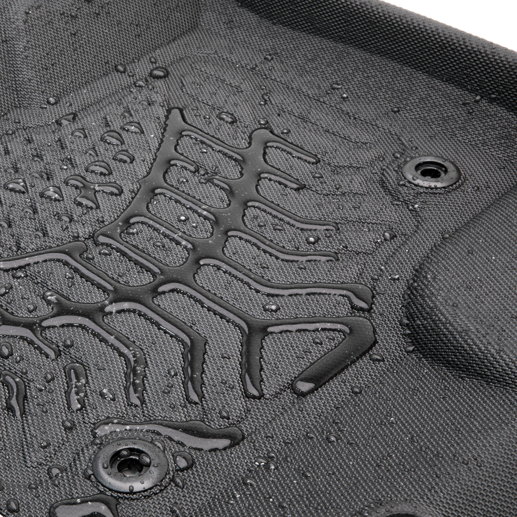 Get a stylish look and reliable interior protection with ARIES StyleGuard XD floor liners. These floor liners are not like other floor mats for trucks, Jeeps and SUVs. They are engineered with a patented anchoring system, a unique triple-layer construction and a sleek, functional finish to give you the protection you need to work hard and play even harder. This floormat kit fits select years of the Toyota Tundra extended crew cab (includes second row only) (see application info to verify fitment). One of the greatest advantages of StyleGuard XD floor liners is their patented OmniGrip fibers. Unlike plastic nubs, OmniGrip uses thousands of wire-like bristles to anchor to all types of carpet and lock the floorliner into place. The second layer in the three-layer configuration is a thick pad of cross-linked polyethylene foam (XPE). XPE is sound-dampening to limit unwanted road noise. It is shock-absorbing to provide a softer step. And it is thermostatic, meaning it resists temperature transfer to keep your cab more comfortable, whether warm or cool. The top layer of StyleGuard XD floor liners is a highly durable, finely textured thermoplastic rubber. This tough yet breathable material is completely waterproof and stands up to the wear of regular foot traffic. Because it is textured, it offers enhanced traction and provides a sleek, stylish appearance for the interior of your vehicle. StyleGuard XD floor liners are also equipped with integrated channels and raised edges to strategically direct the flow of liquids and debris to keep them from sloshing around. Each StyleGuard XD floor liner set is laser-measured to perfectly fit your vehicle. This ensures a custom fit, a contoured look and a virtually instantaneous installation -- just drop them into place. These floor liners are also constructed from lightweight materials for easy removal.